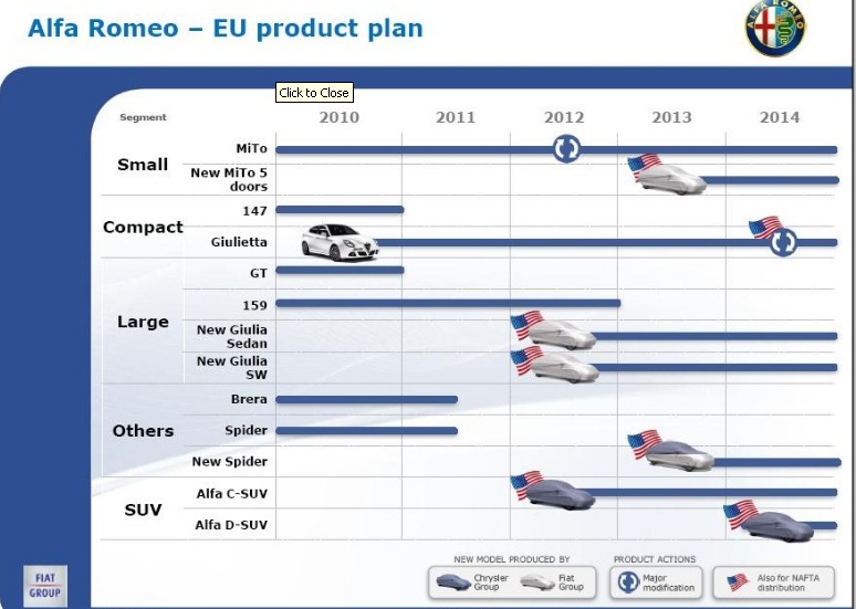 Pour rappel le plan produit d'Alfa jusqu'en 2014