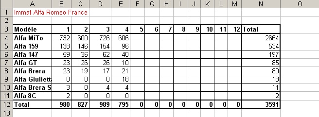 Ton tableau justifie le succés de la MitO incontestablement! je rapel qu'il représente "les immatriculations" et non les ventes, il peut avoir 30 ventes et que 5 immat, c'est comme ça que les constructeurs comptabilisent leurs part de marché! je pense que tous le monde saisit la nuance _________________ Alfa MiTo 1.6 JTDM 120 selective , Rouge Giulietta, Pack Sport, Pack confort, Blue&Me + Regulateur + Pare Brise Athermique. "Quand je vois passer une Alfa Romeo, j’enlève mon chapeau". Henry Ford |